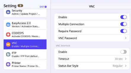 To activate the VNC viewer, you can enable VNC directly within your HMI system settings. Alternatively, you can set up a macro that runs once at program startup to automatically turn the VNC bit on.