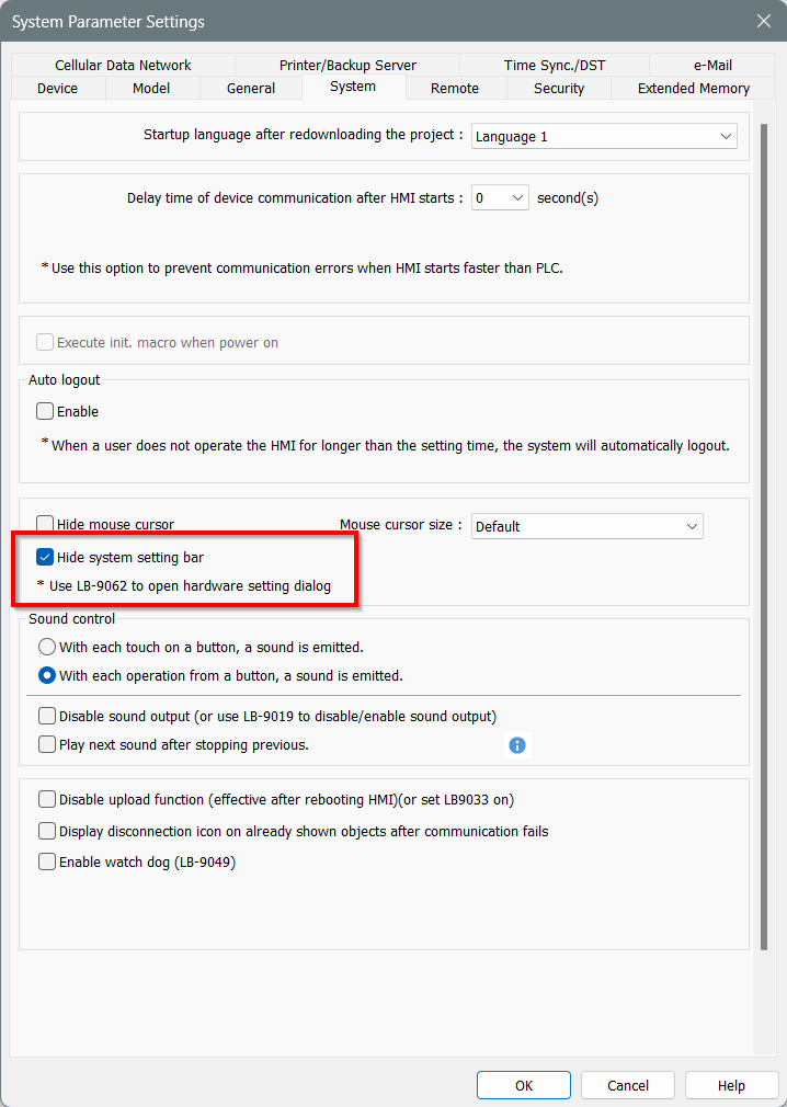 It isn’t possible to move the system toolbar, but the alternative we recommend is hiding the system setting bar and using the LB-9062 bit to trigger the menu if needed. To hide the system setting bar, navigate to System Parameters Settings > Settings > Hide system setting bar.