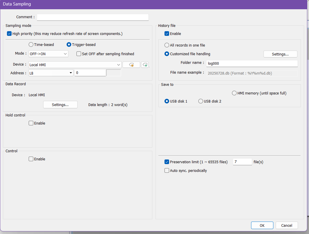 Is it possible to save data samples directly to USB in CSV format instead of the HMI flash memory? Also, I read that frequent writing to the HMI memory can accelerate the memory degradation. Six float inputs are logged at one second intervals for up to three days at a time. How long can the memory last at that rate? Do you have any suggestion for better equipment or file/data transfer methods that would be better in this application?