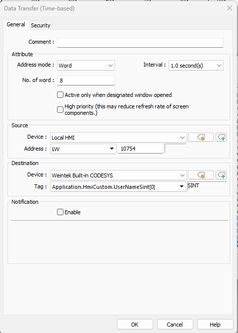 This is possible, but a key point to remember is that with our client application cMT Viewer technically multiple users can login at the same time. However, the username if the user that is logged into the local HMI is stored within LW-10754 ~ 10761 (8 words). To transfer that into CODESYS you can use one of the methods shown within this post: Link