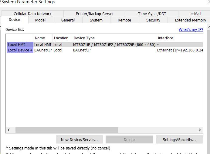 You will notice that the HMI is connected to Local Device 4. In the past I have had trouble with the BACnet device becoming detached (see earlier post) - I expect the no4 means this is the 4th time I have attached/reattached the (same) device.
