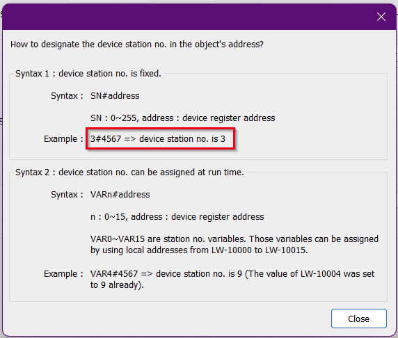 Adding on to @eddy_neves, below is the syntax to access device stations within the Modbus TCP/IP driver. This syntax will be used if the M50 does not provide address mapping to the devices.