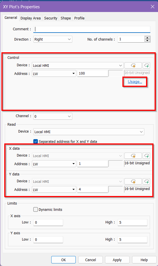 ok i think the macro work well, then in setting of XY PLOT should i set the variable on Adress of local HMI not directly from plc, the macro will take it from plc and put it in LW1 and LW2 ? i’m right ?