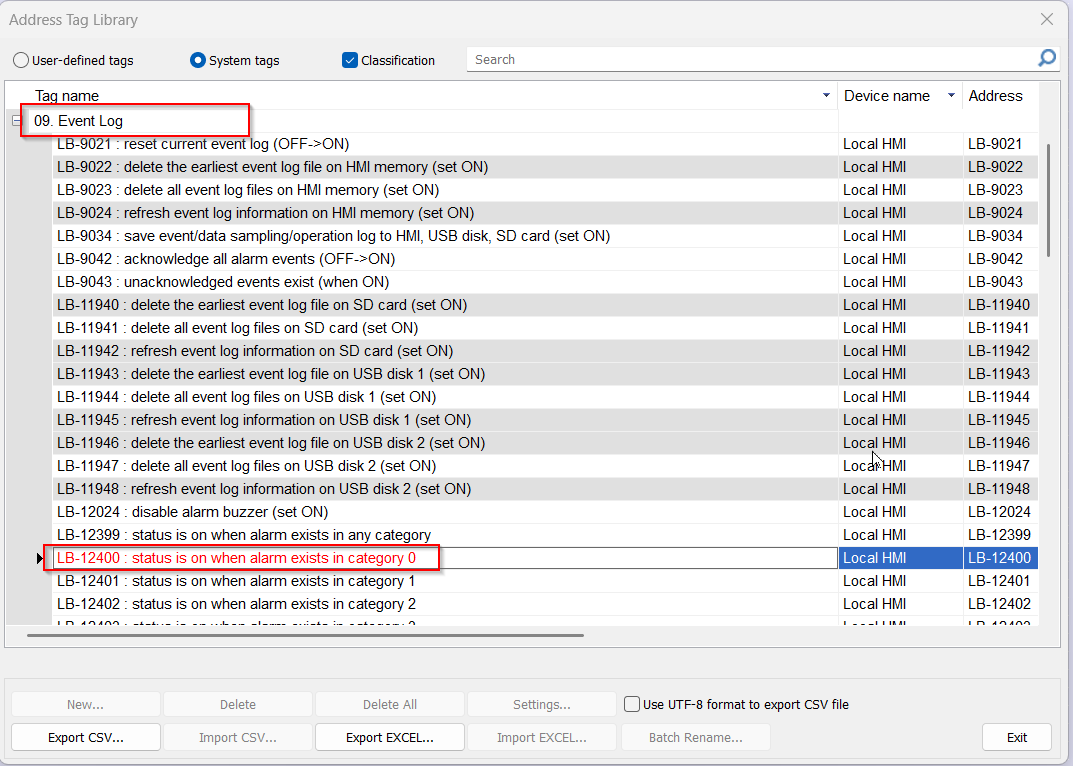 In my project I am using category 0 in the event log as my alarms, meanwhile I am using category 250-255 for tracking sequence and cycle times in the event bar charts.