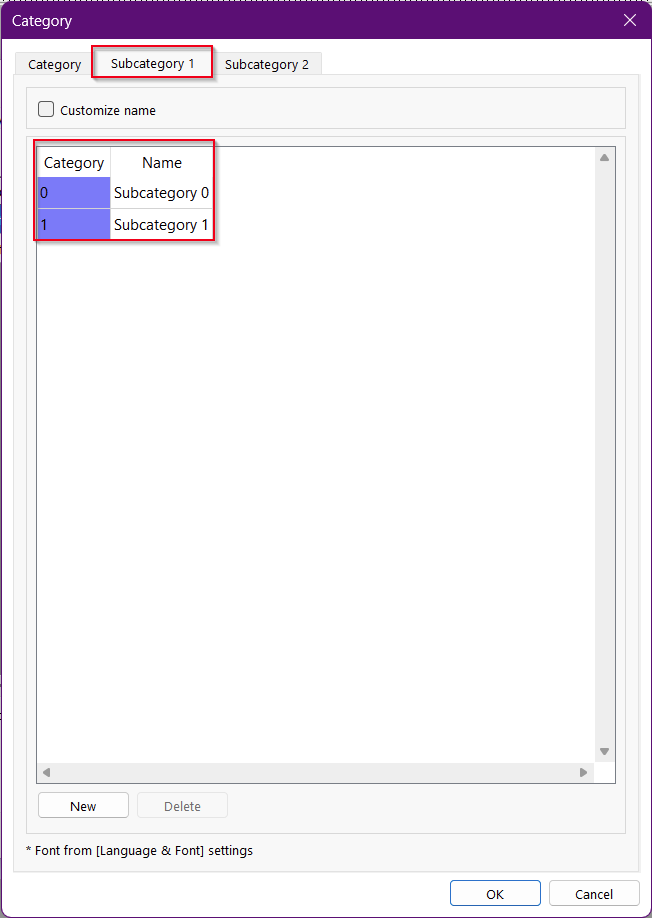 I found I was able to rename the category and subcat titles. So in the following screen shots keep that in mind: