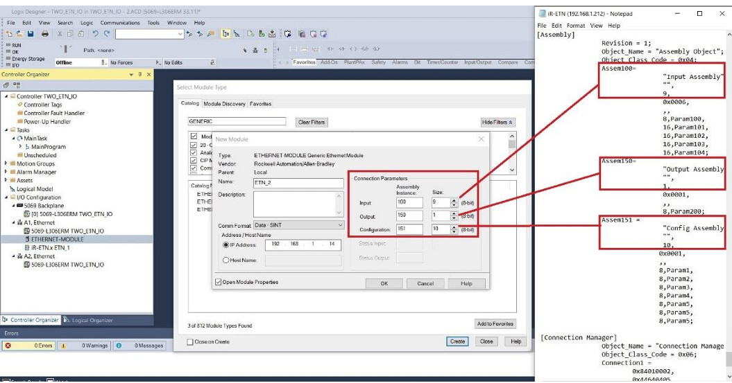 Within the Allen Bradley software, each device requires a unique EDS file. For set up please add a Generic Ethernet Module, fill in the connection parameters for the EDS file, and RPI should be set to the default 10ms.