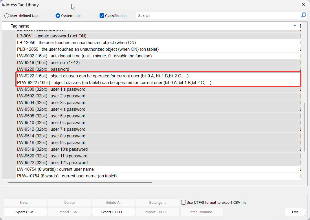 When a user is logged in, the value of LW-9222 or PLW-9222 changes according to the users login credentials: