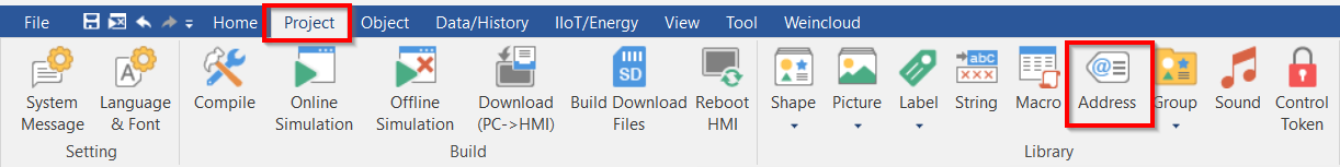 The system address can be accessed through the “Address” icon within the “Project” tab.