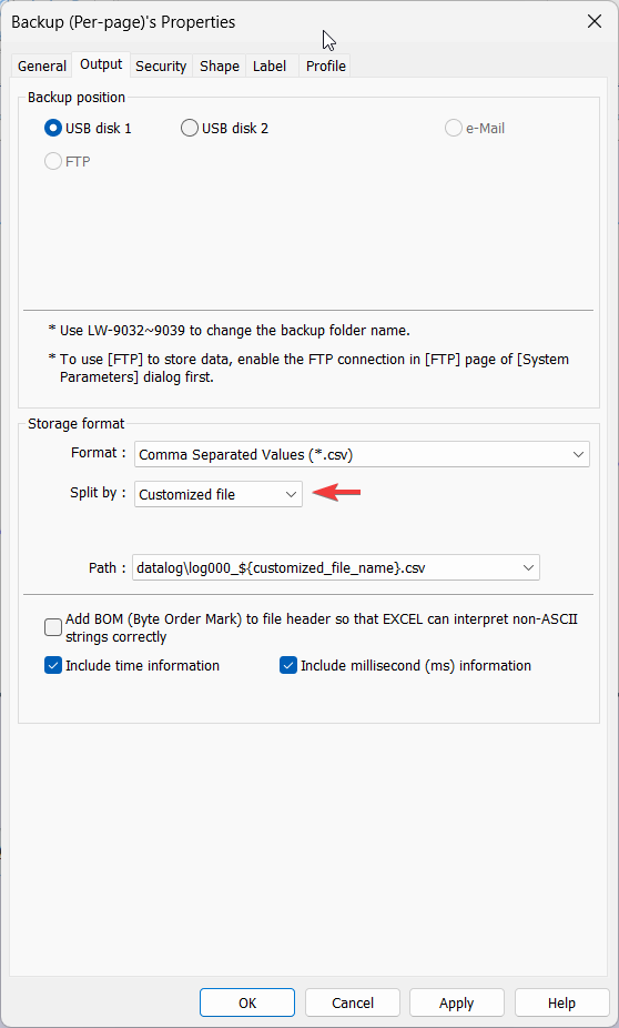 I need to log the INT value of 9 counters from the PLC to a CSV file with a custom name on an inserted USB disk. The PLC has a STRING tag that contains lot info that needs to be the name of the file, and within the file I need to log the 9 counter values with either a comment or variable name so that it is obvious which number is which counter.