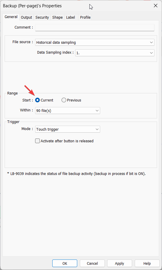 The backup method will export a .csv instance of the most recent files. When you create a new file, that file will be used for the current data logging until you activate the “Register status” to trigger the creation of a new file.