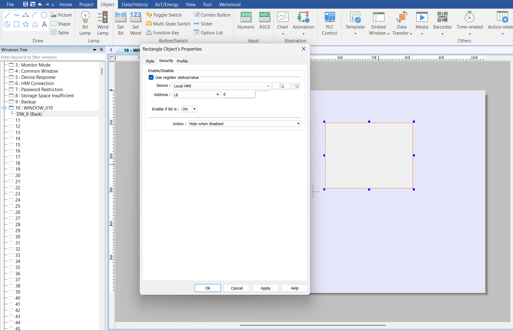 How to control the visibility of an object with a Boolean variable - Weintek USA