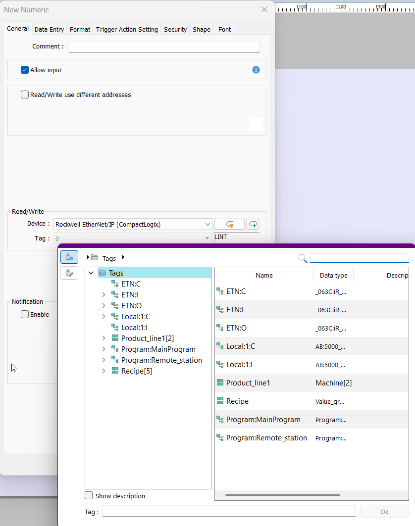 In EasyBuilder Pro, the only way to view imported tags is when you are assigning an object to a tag. Please select the device you want to reference, then click the tag field to view all available tags for that object. The tag list will vary depending on the tag’s data type.
