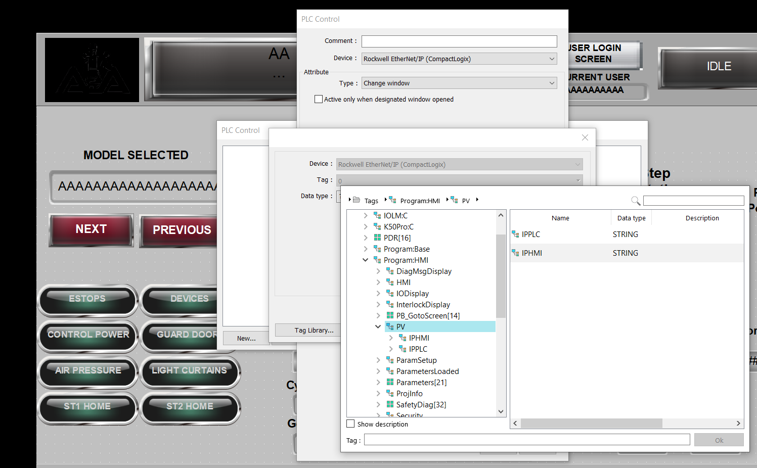 Did you use the “Get/Set FN…” button on the bottom left corner to select that tag called ““Program:HMI.PV.GotoDisplay””? If not, please try using the “Get/Set FN…” button to see this tag can be found in the tag list of the macro.