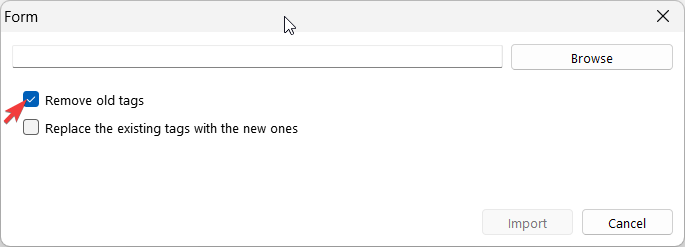 Thank you for clarifying, in this case please only select “Remove old tags” during import: