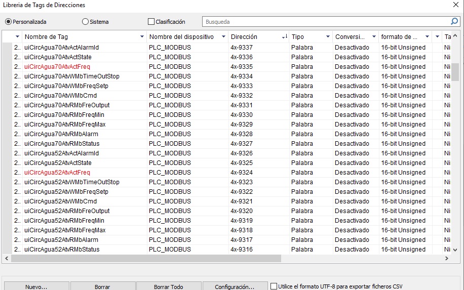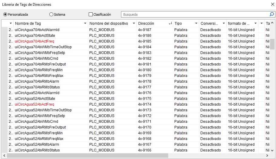 The pictures attached show the addresses before and after the tag import. The Tags name were the same before and after the import, only the modbus address was changed. The numeric object pointed to uiCircAgua52AtvActFreq (modbus addres 4x-9174) and after the import the same numeric object pointed to other Tag name with the same address. The import settings was done with both option checked (delete old tags and replace existing tags with new ones)