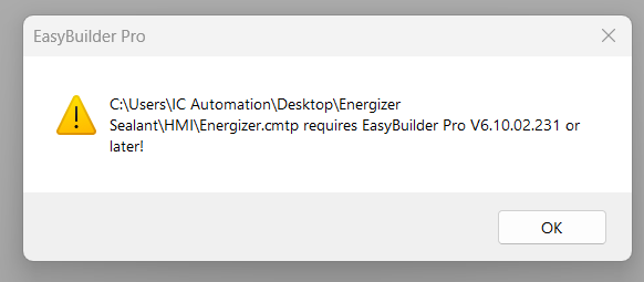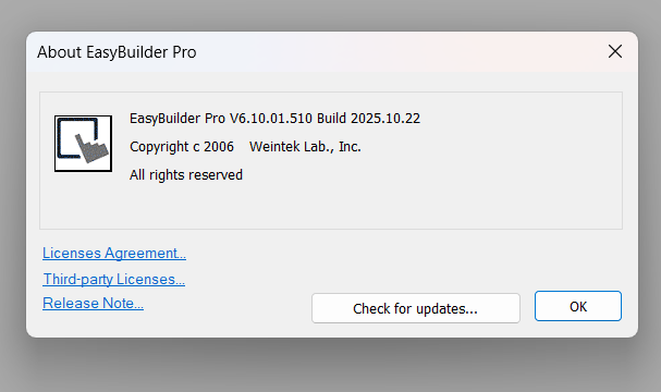 - EasyBuilder Pro Version: V6.10.02.231 Build 2020.01.21