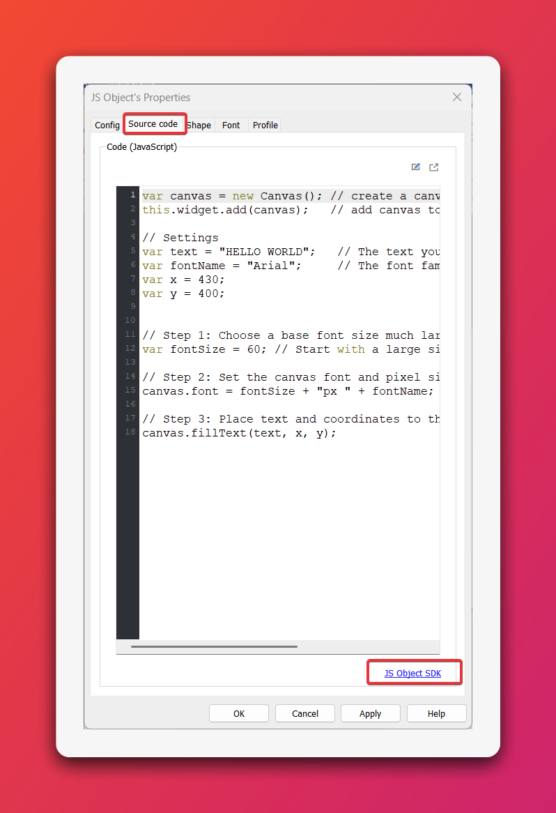 JS Objects in EasyBuilder Pro allow you to control and implement ideas in your project using JavaScript. In this post, we will discuss using the Canvas feature in a JS Object to display text. With a JS Object, we can directly control the text’s pixel size instead of being limited to the preset font ranges available in the Label tab and built-in text objects in EasyBuilder Pro.
