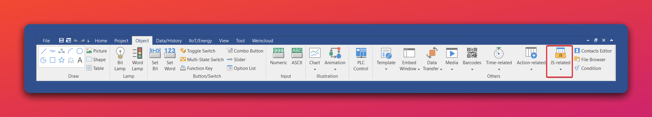 The JS Object can be found within the JS related section within the Object tab.